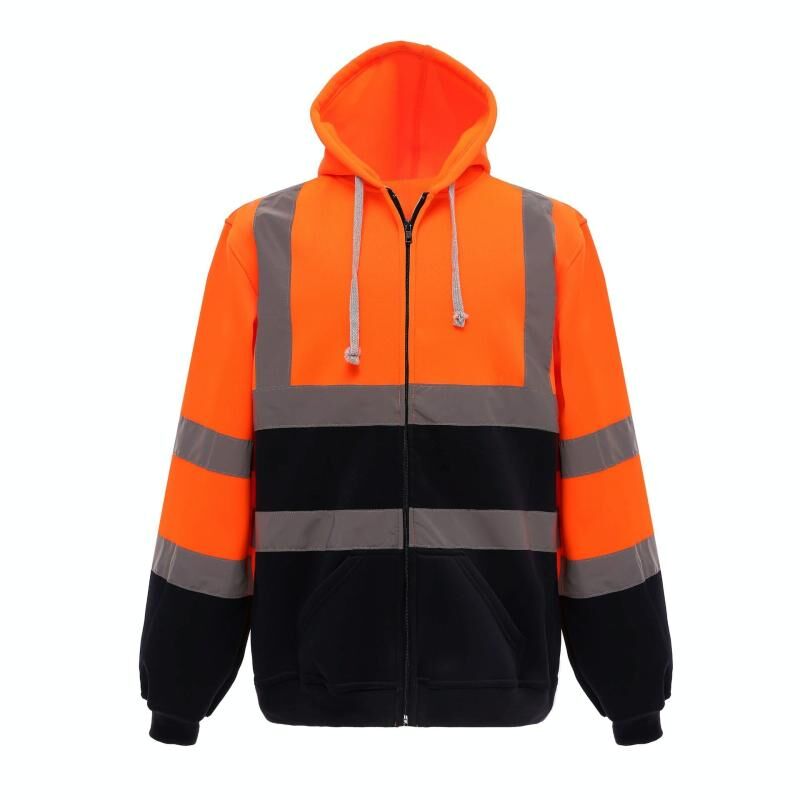 Αντανακλαστικό φούτερ με κουκούλα φερμουάρ Εξωτερική Αθλητισμός Fleece αντανακλαστικά ρούχα, μέγεθος: L (πορτοκαλί + ναυτικό μπλε)