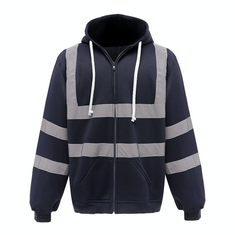 Αντανακλαστικό φούτερ με κουκούλα φερμουάρ Εξωτερική Αθλητισμός Fleece αντανακλαστικά ρούχα, μέγεθος: Μ (Ναυτικό μπλε)