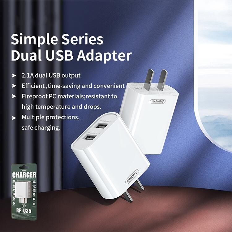 Φορτιστής REMAX Σειράς Jane RP-U35 2.1A Διπλής Θύρας USB, Προδιαγραφή: Ευρωπαϊκό Βύσμα (Λευκό) (REMAX)