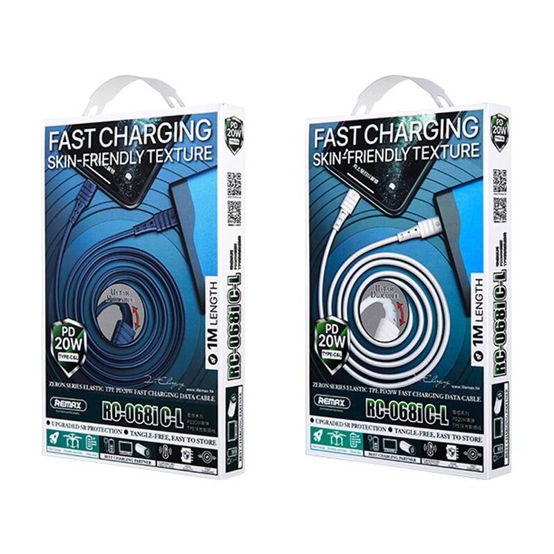 Καλώδιο Γρήγορης Φόρτισης και Μεταφοράς Δεδομένων REMAX RC-068i PD 20W Type-C / USB-C σε 8 Pin με Ελαστικό TPE, Μήκος: 1m (Μπλε) (REMAX)