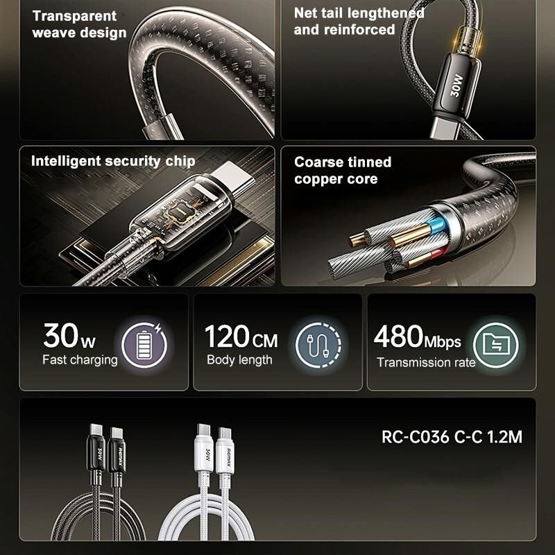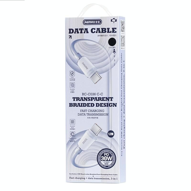 REMAX RC-C036 1.2m 30W καλώδιο γρήγορης φόρτισης τύπου-C σε διαφανές πλεγμένο καλώδιο τύπου-C (λευκό) (REMAX)