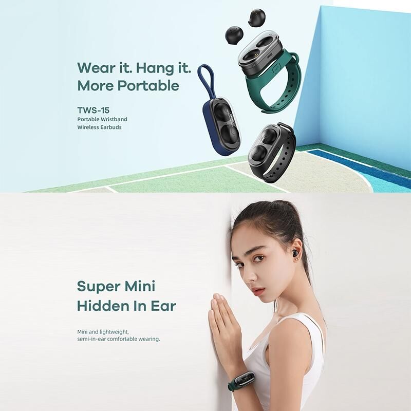 Remax TWS-15 Bluetooth 5.0 Portable Wristband Style True Wireless Stereo Earphone(Green) (REMAX)