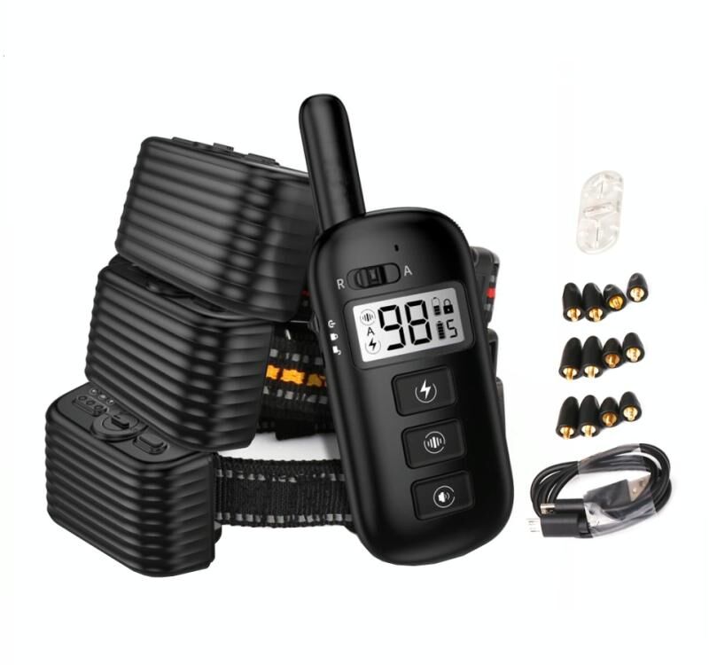 8. 1 drag 3 packing list: remote control x1, receiver x3, collar x3, charging cable x1, conductive column x12, test light x1, manual x1