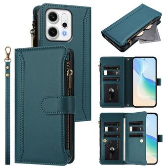 For OPPO Reno14 Pro 5G Global Magnetic Closure 9 Card Slots Zipper Leather Case with Hand Strap(Dark Green)