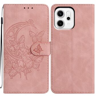 For OPPO Reno14 Pro 5G Global Moonlit Butterfly Dance Pattern Embossed Leather Phone Case(Pink)