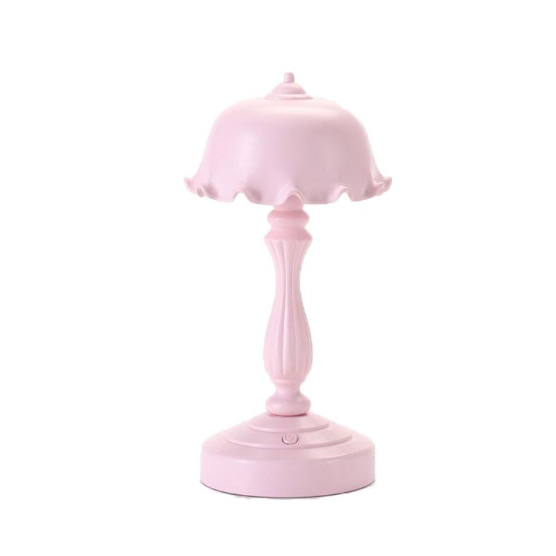 Retro Charging Table Lamp Bedroom Bed LED Eye Protection Light(LD04 Flower Hat Pink)