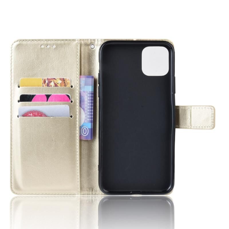 Θήκη δέρματος οριζόντιας ανατροπής με υφή Retro Crazy Horse για Apple iPhone 11 Pro Max 6,5 ιντσών, με βάση & υποδοχές καρτών & κορνίζα φωτογραφιών (Μαύρο)