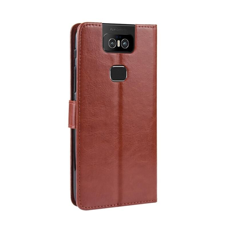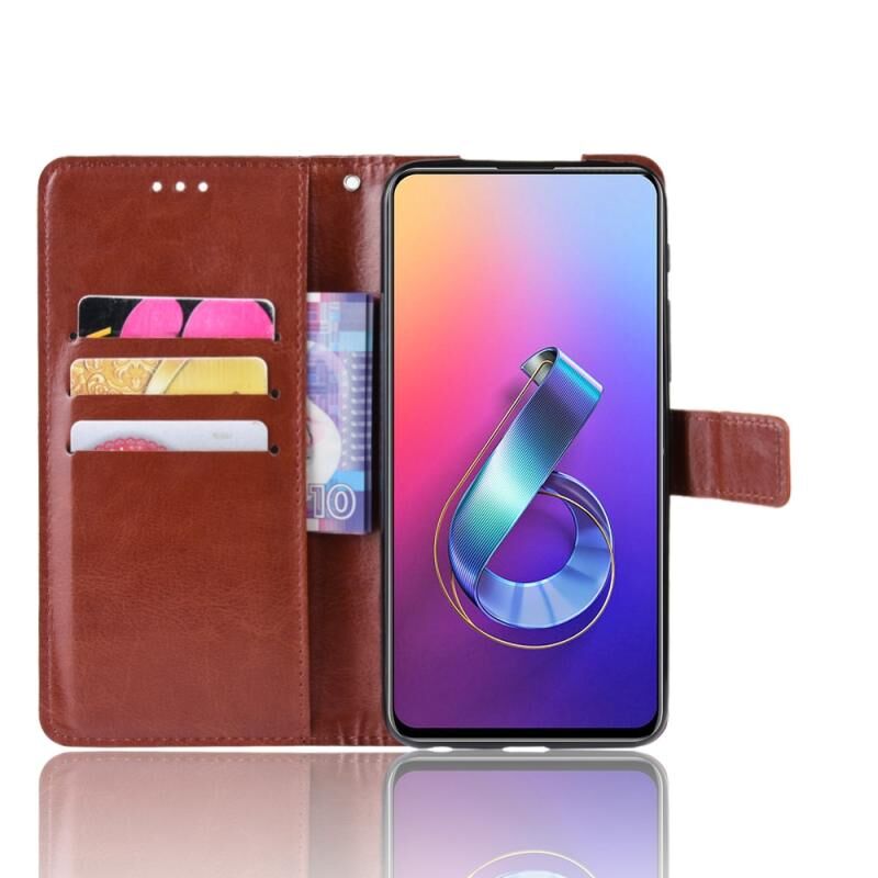 Ρετρό τρελό άλογο υφή οριζόντια Flip δερμάτινη θήκη για Asus Zenfone 6 ZS630KL, με θήκη & υποδοχές για κάρτες & πλαίσιο φωτογραφιών (καφέ)
