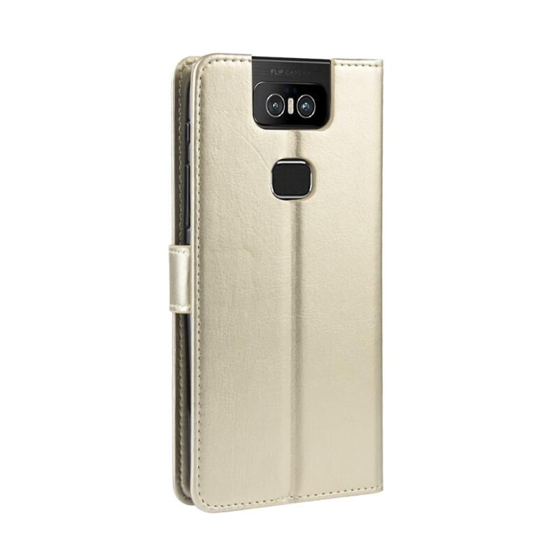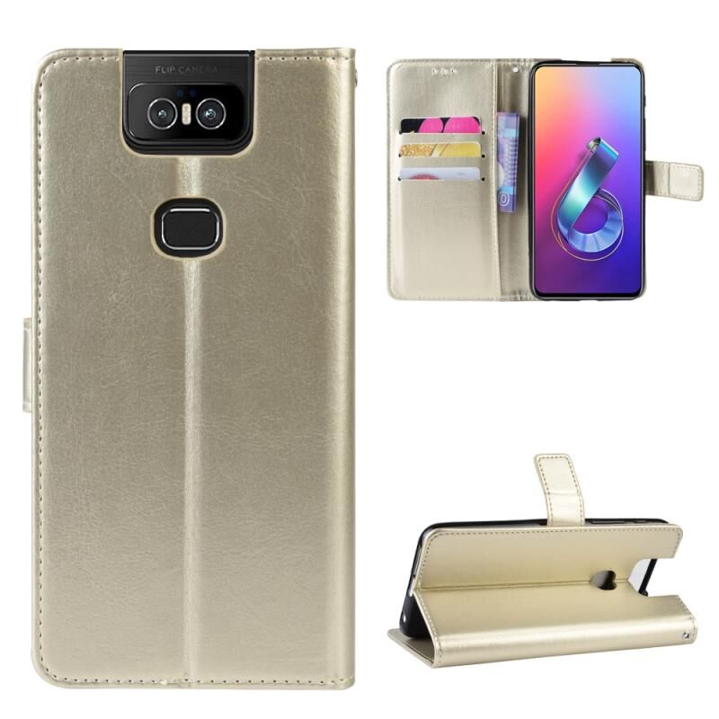 Ρετρό τρελό άλογο υφή οριζόντια Flip δερμάτινη θήκη για Asus Zenfone 6 ZS630KL, με θήκη & υποδοχές για κάρτες & πλαίσιο φωτογραφιών (χρυσό)