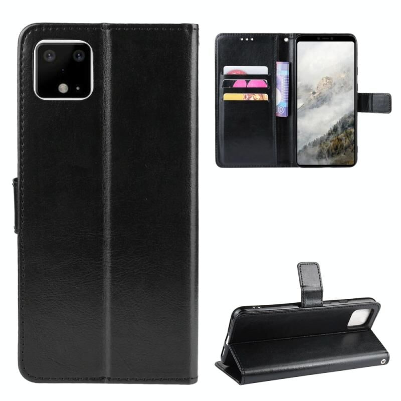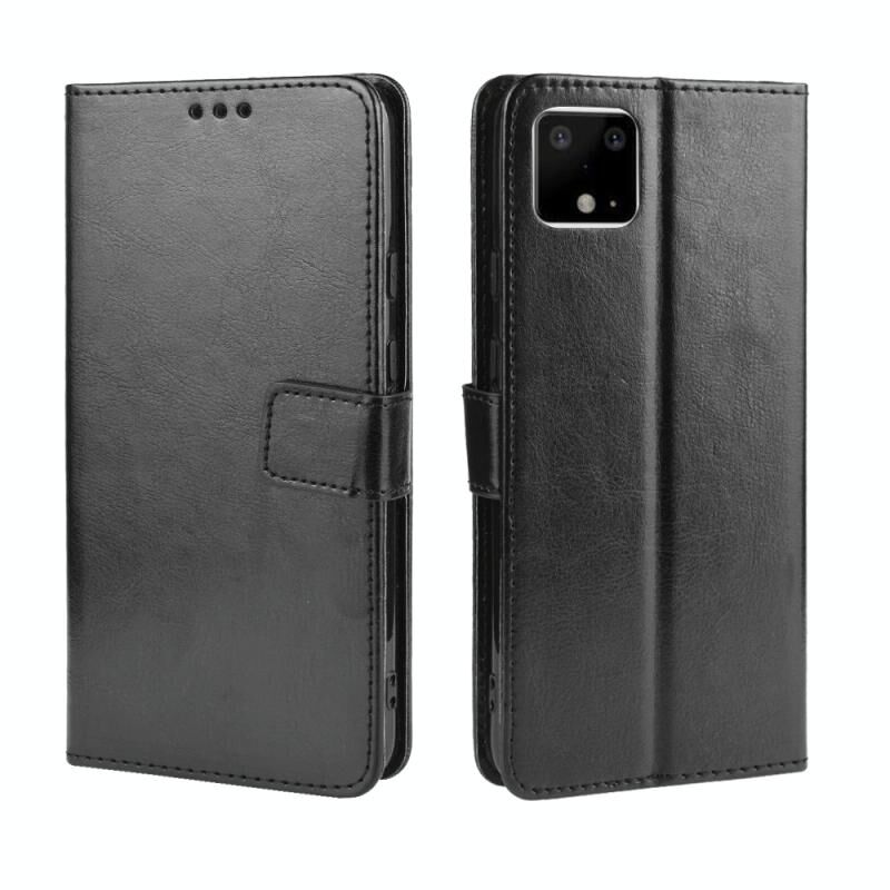 Ρετρό τρελό άλογο υφή οριζόντια Flip δερμάτινη θήκη για το Google Pixel 4 , με θήκη & υποδοχές για κάρτες & πλαίσιο φωτογραφιών (μαύρο)