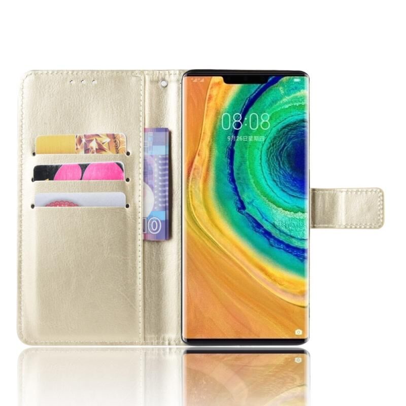 Ρετρό Crazy Horse Υφή Οριζόντια Flip δερμάτινη θήκη για Huawei Mate 30 Pro, με θήκη & υποδοχές για κάρτες & πλαίσιο φωτογραφιών (χρυσό)