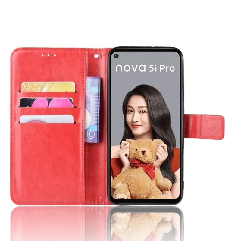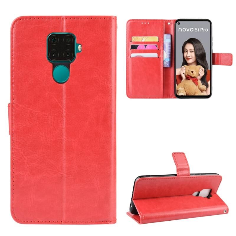 Ρετρό τρελό άλογο υφή οριζόντια Flip δερμάτινη θήκη για Huawei Nova 5i Pro / Mate 30 Lite , με θήκη & υποδοχές για κάρτες & πλαίσιο φωτογραφιών (κόκκινο)