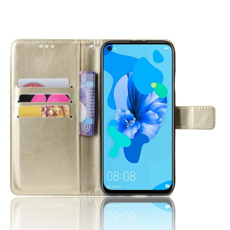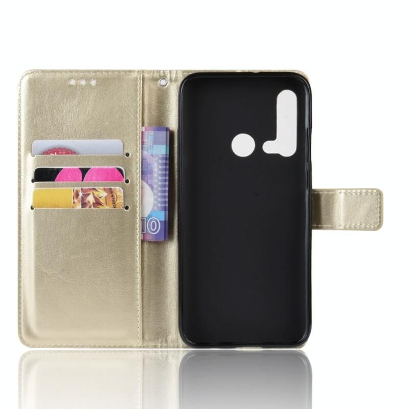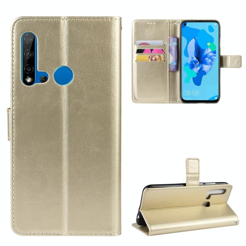 Θήκη δέρματος Retro Crazy Horse με οριζόντιο άνοιγμα για Huawei P20 lite (2019) / Nova 5i, με βάση στήριξης & θήκες καρτών & κορνίζα φωτογραφιών (Χρυσό)