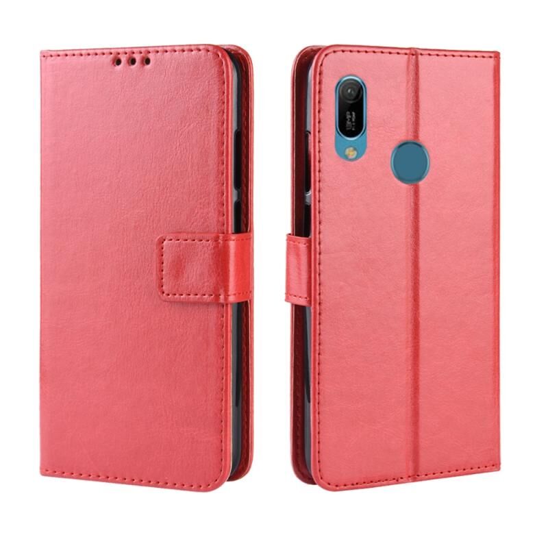 Ρετρό τρελό άλογο υφή οριζόντια Flip δερμάτινη θήκη για Huawei Y6 (2019), με θήκη & υποδοχές καρτών & πλαίσιο φωτογραφιών (κόκκινο)