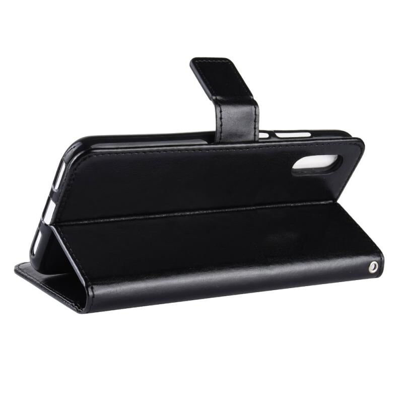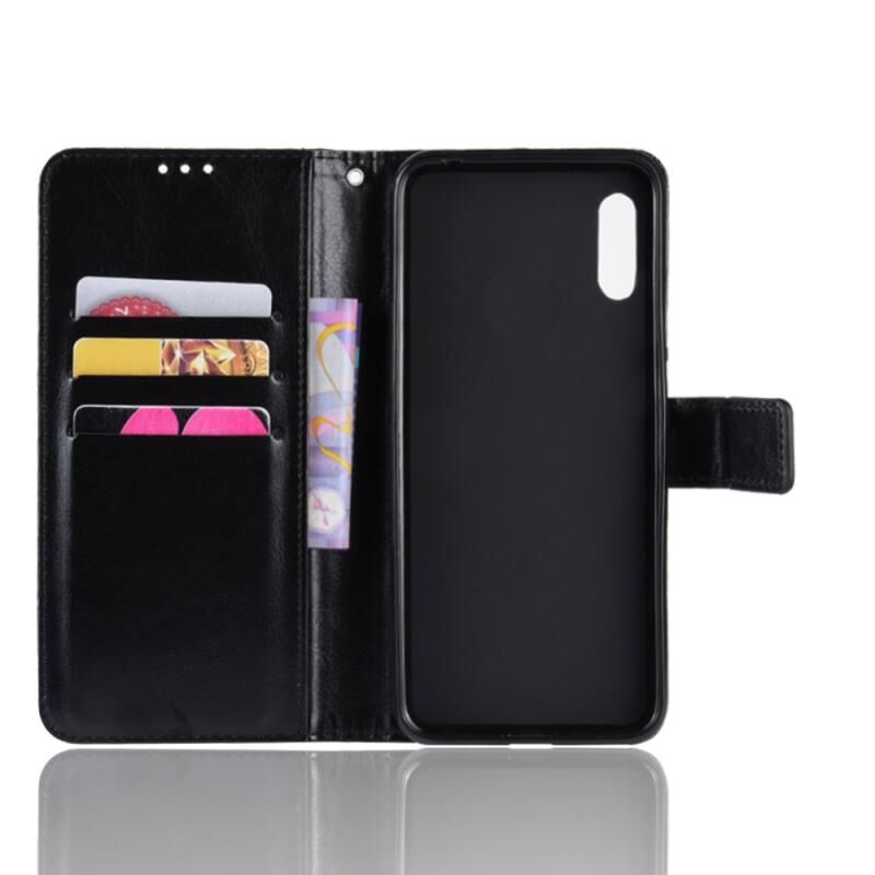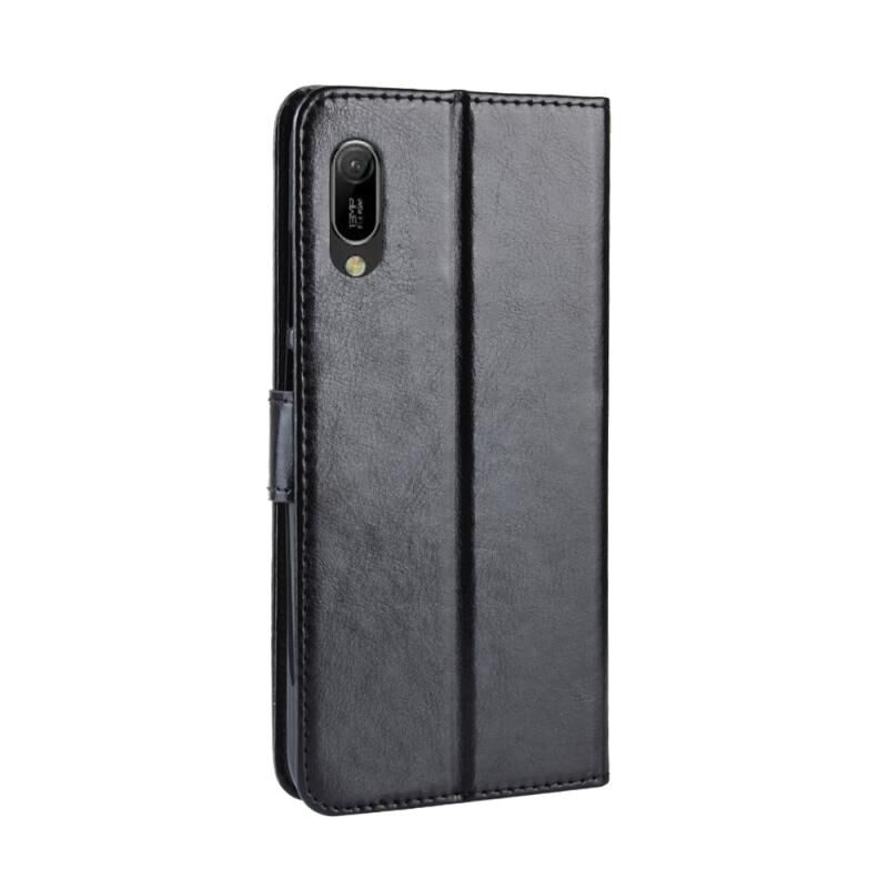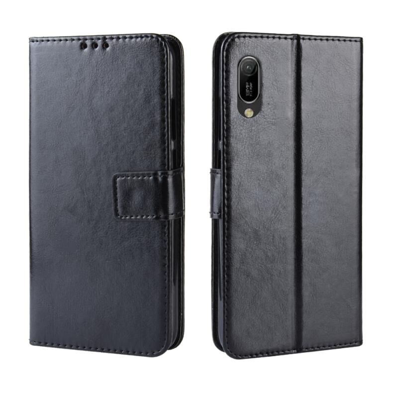 Ρετρό τρελό άλογο υφή οριζόντια Flip δερμάτινη θήκη για Huawei Y6 Pro (2019), με θήκη & υποδοχές καρτών & πλαίσιο φωτογραφιών (μαύρο)