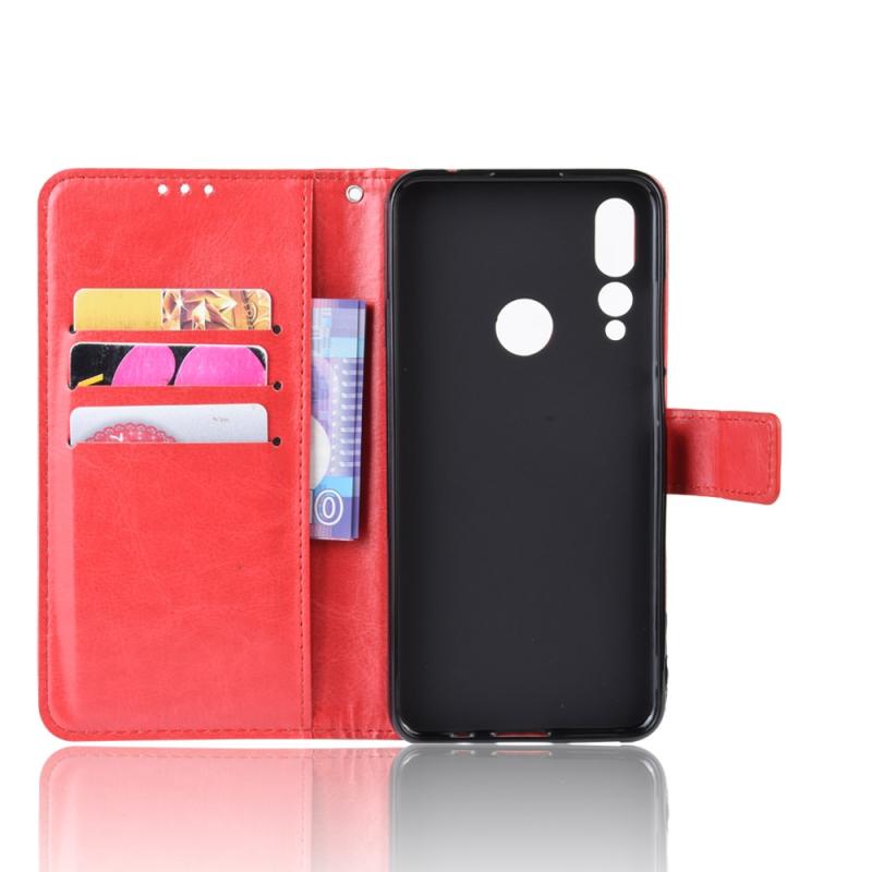 Retro Crazy Horse Texture Horizontal Flip Leather Case for Lenovo Z5S, with Holder & Card Slots & Photo Frame(Red)