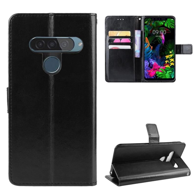 Ρετρό Crazy Horse Υφή Οριζόντια Flip δερμάτινη θήκη για LG G8S ThinQ , με θήκη & υποδοχές για κάρτες & πλαίσιο φωτογραφιών (μαύρο)