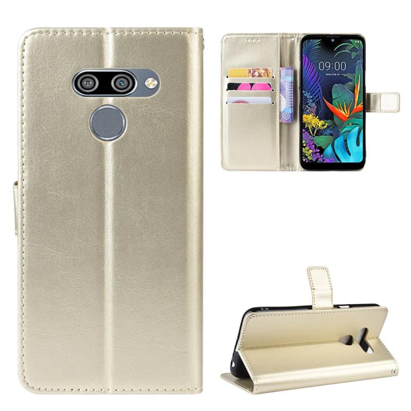 Retro Crazy Horse Texture Horizontal Flip Leather Case for LG K50 /LG Q60, with Holder & Card Slots & Photo Frame(Gold)