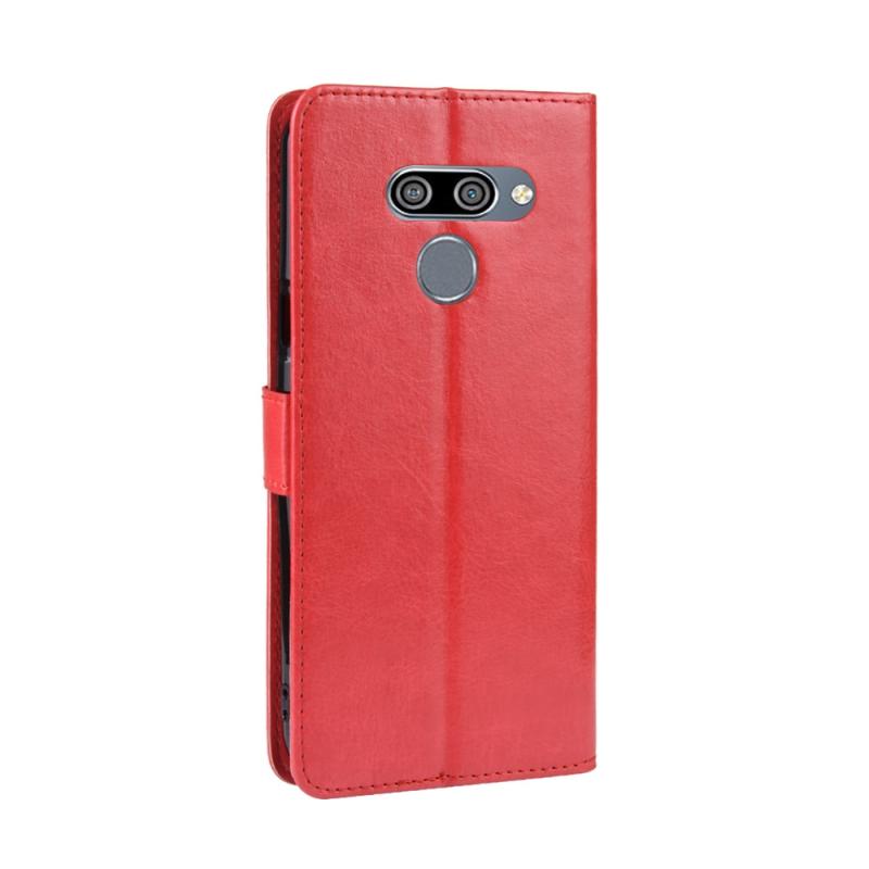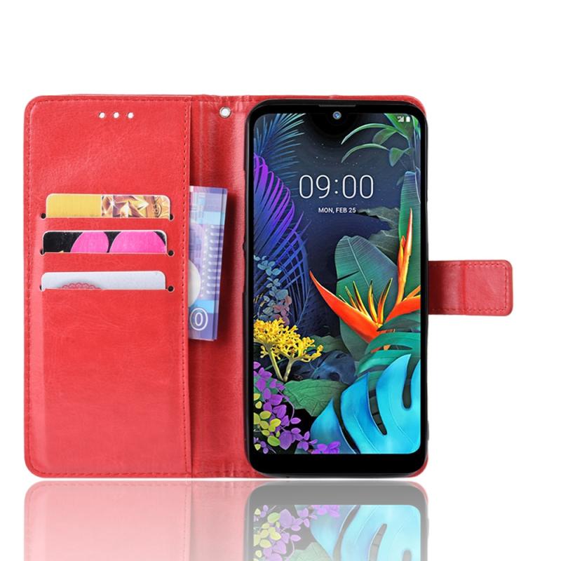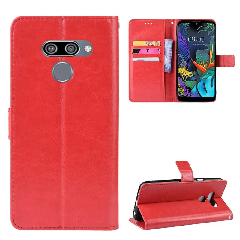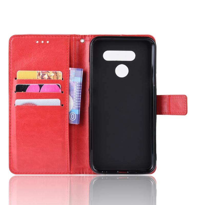 Retro Crazy Horse Texture Horizontal Flip Leather Case for LG K50 /LG Q60, with Holder & Card Slots & Photo Frame(Red)