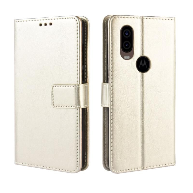 Ρετρό Crazy Horse Υφή Οριζόντια Flip δερμάτινη θήκη για Motorola MOTO One Vision, με θήκη & υποδοχές για κάρτες & πλαίσιο φωτογραφιών (χρυσό)
