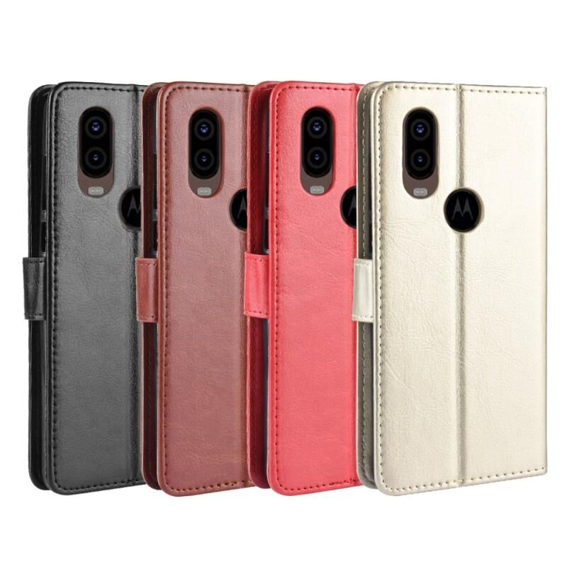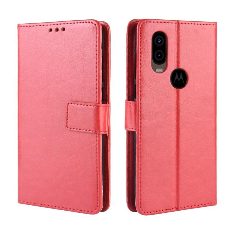 Ρετρό Crazy Horse Υφή Οριζόντια Flip δερμάτινη θήκη για Motorola MOTO One Vision, με θήκη & υποδοχές για κάρτες & πλαίσιο φωτογραφιών (Κόκκινο)
