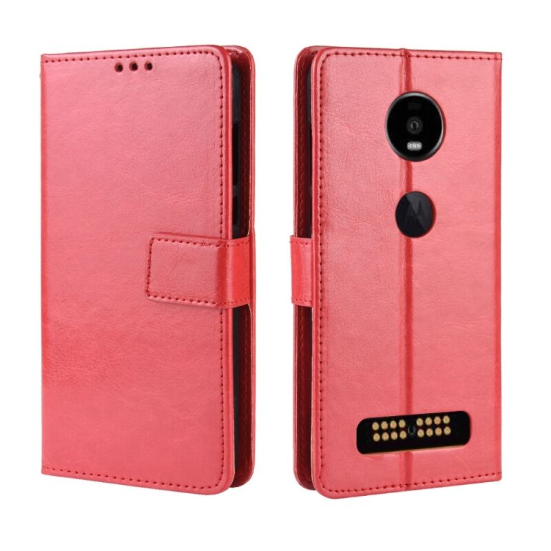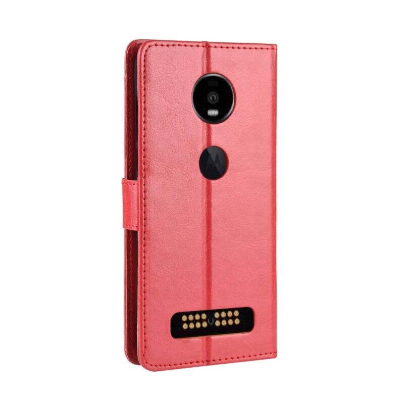 Θήκη δέρματος Retro Crazy Horse με οριζόντιο άνοιγμα για Motorola Moto Z4/Z4 Play, με βάση & θήκες καρτών & κορνίζα φωτογραφιών (Κόκκινο)