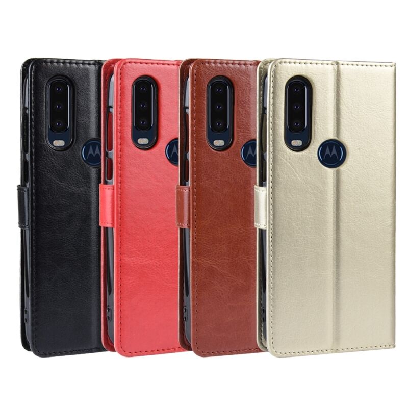 Θήκη δέρματος Retro Crazy Horse με οριζόντιο άνοιγμα για Motorola One Action, με βάση & θήκες καρτών & κορνίζα φωτογραφιών (Χρυσός)