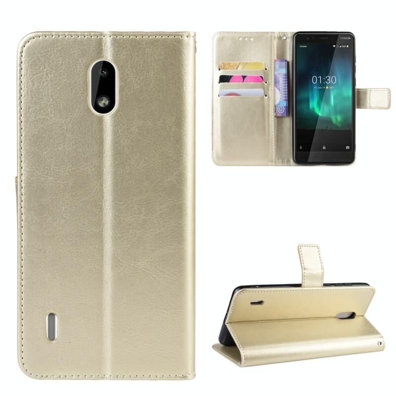 Ρετρό τρελό άλογο υφή οριζόντια Flip δερμάτινη θήκη για Nokia 3.1 C , με θήκη & υποδοχές για κάρτες & πλαίσιο φωτογραφιών (χρυσό)