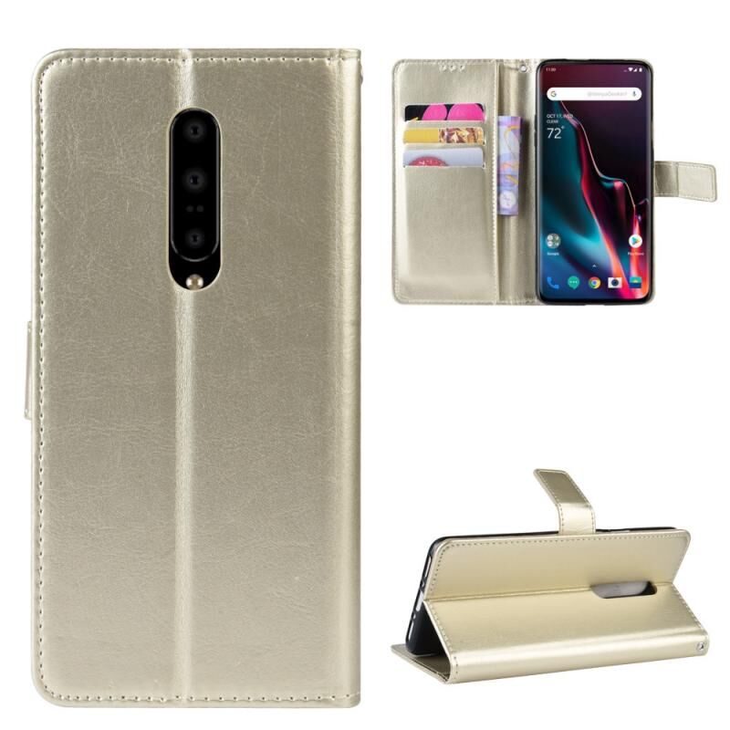 Ρετρό τρελό άλογο υφή οριζόντια Flip δερμάτινη θήκη για OnePlus 7 Pro, με θήκη & υποδοχές για κάρτες & πλαίσιο φωτογραφιών (χρυσό)