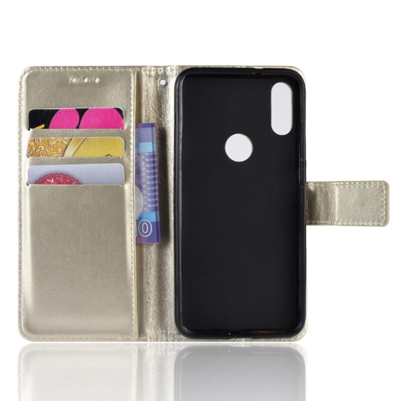 Ρετρό τρελό άλογο υφή οριζόντια Flip δερμάτινη θήκη για Xiaomi Redmi 7, με θήκη & υποδοχές για κάρτες & πλαίσιο φωτογραφιών (χρυσό)