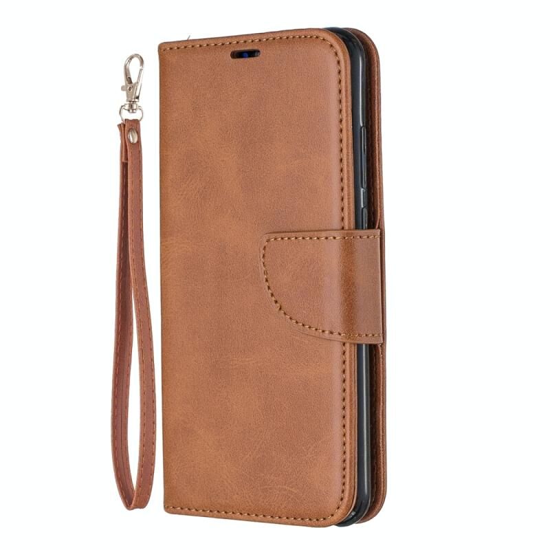 Retro Lambskin Texture Pure Color Horizontal Flip PU Leather Case for Huawei Y6 2019 & Y6 Pro 2019, με θήκη & υποδοχές καρτών & πορτοφόλι & κορδόνι (Καφέ)