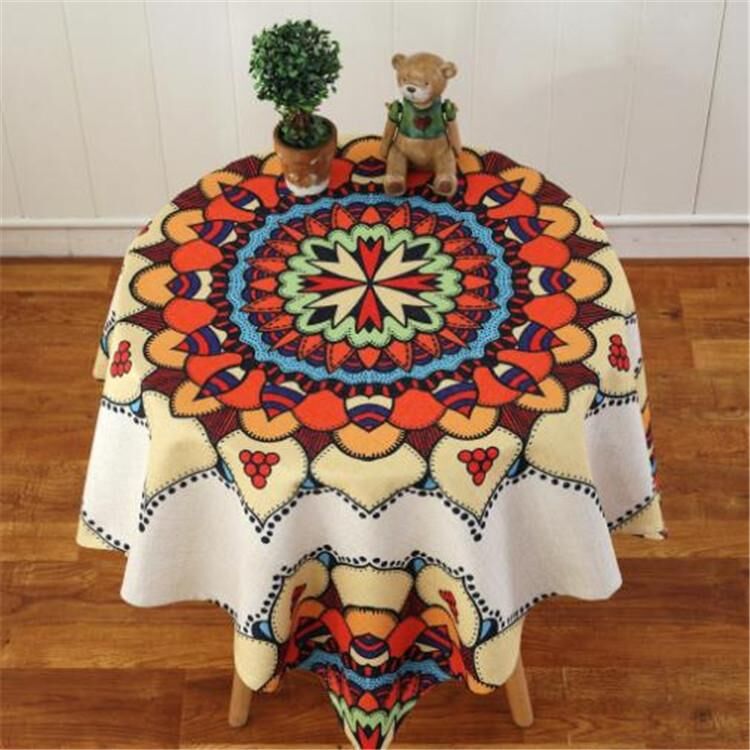 Τραπεζομάντιλο Λινό με Ρετρό Σχέδιο, Αδιάβροχο, 140x200cm (Kaleidoscope)