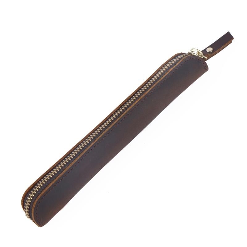 Ρετρό Απλή Θήκη Προστασίας Στυλό Δέρματος με Φερμουάρ, Δέρμα Crazy Horse, Μικρή Θήκη Στυλό (Μαύρο)