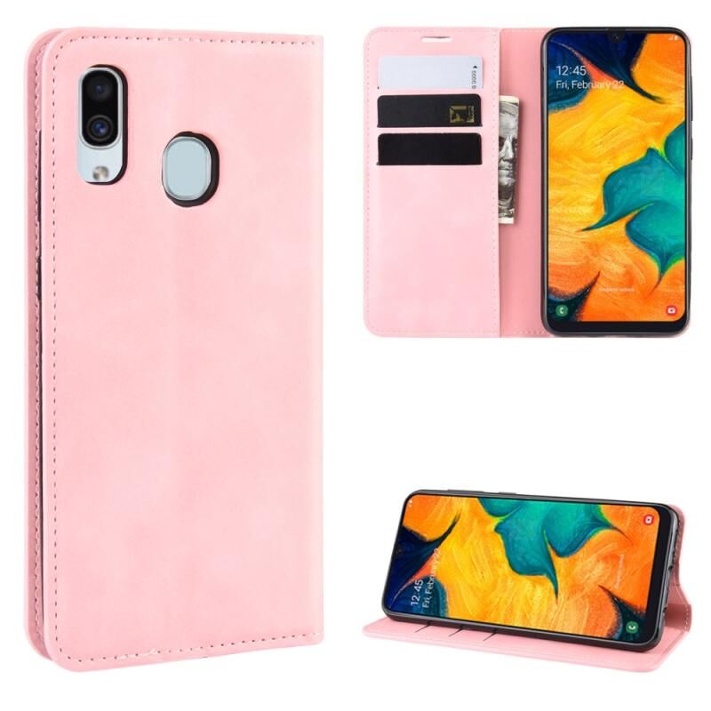 Θήκη Retro-skin Business Μαγνητικής Σύγχυσης από Δέρμα με Πορτοφόλι-Βάση-Στήριγμα για Galaxy A30 (Ροδάκινο)