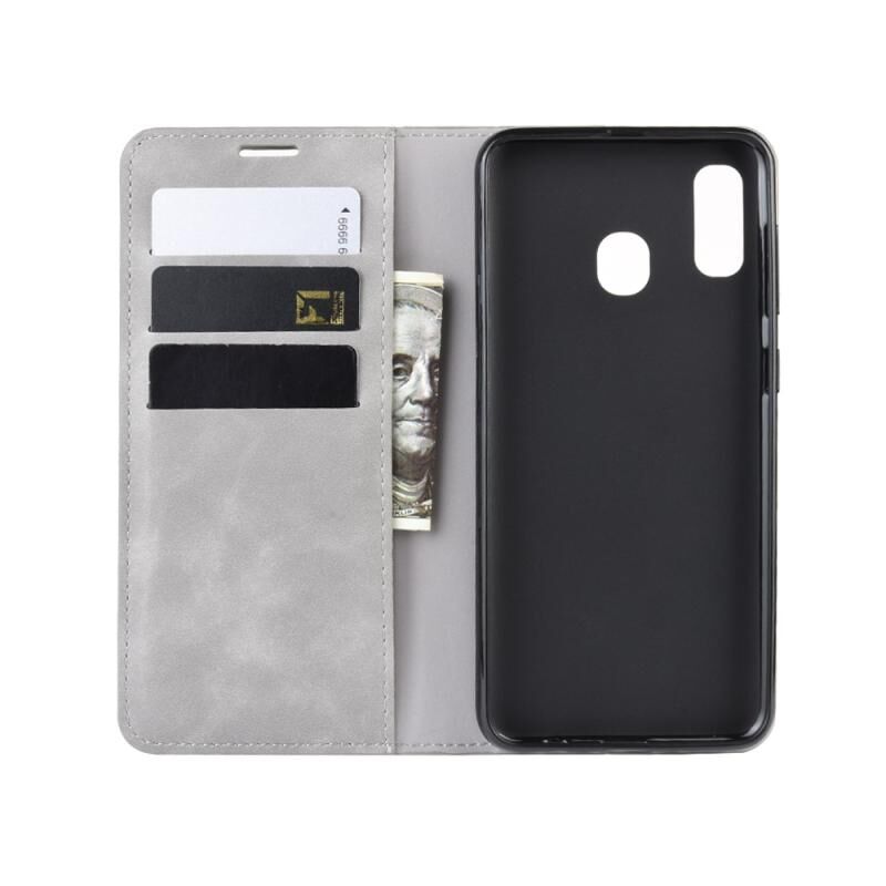 Θήκη δέρματος με μαγνητική απορρόφηση και ενσωματωμένη βάση για Galaxy A30 (Smoke grey)