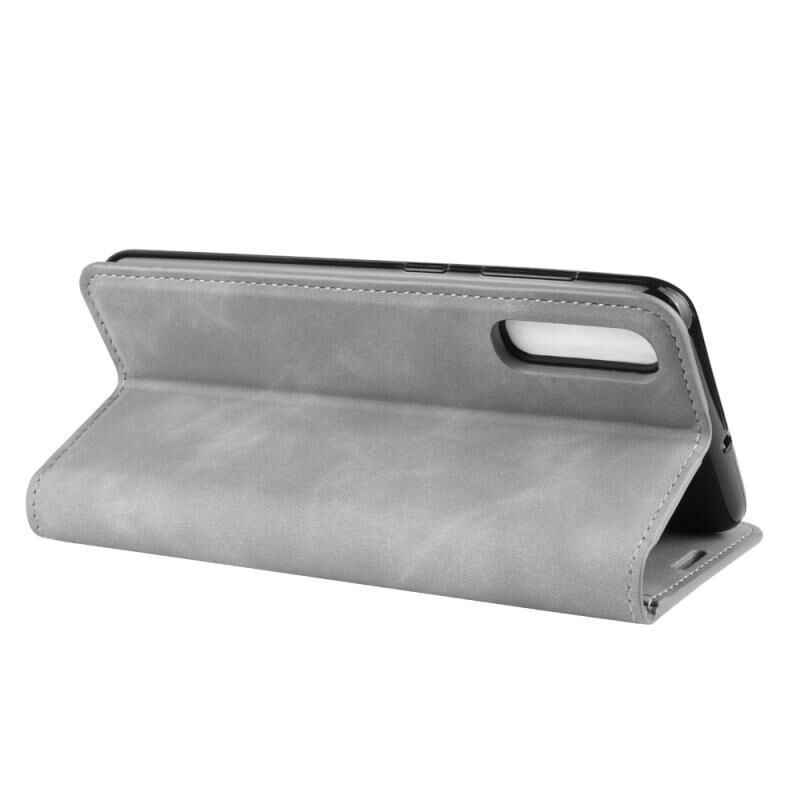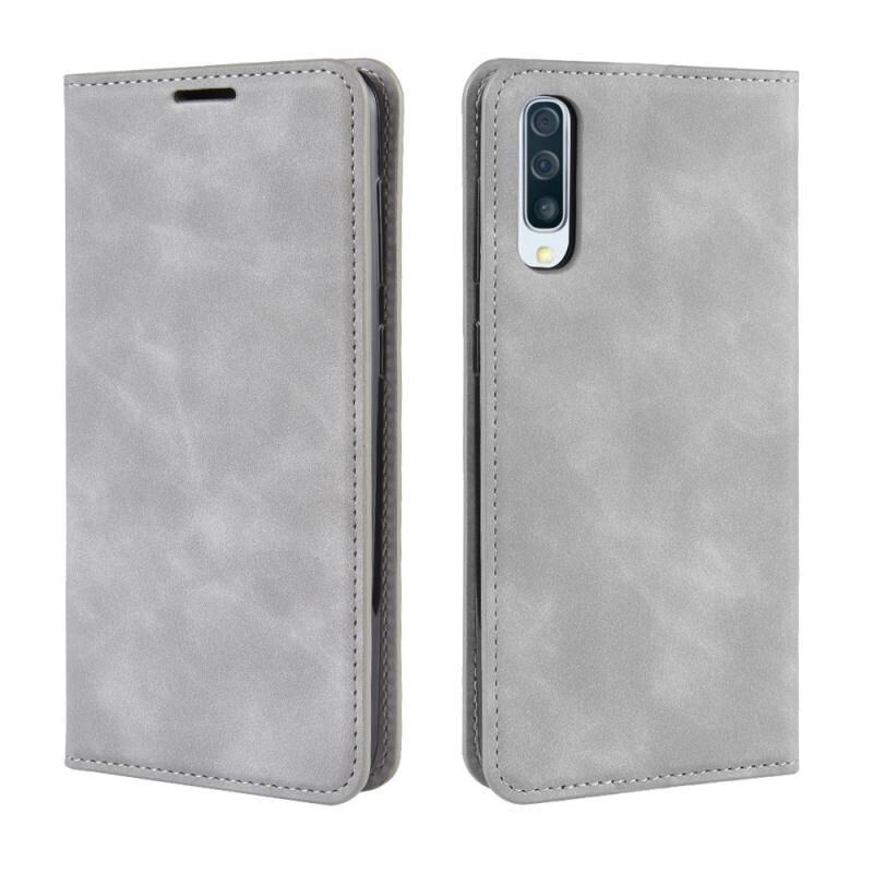 Retro-skin Business Magnetic Suction Leather Case with Wallet & Card Slot & Holder for Galaxy A50(Smoke grey)