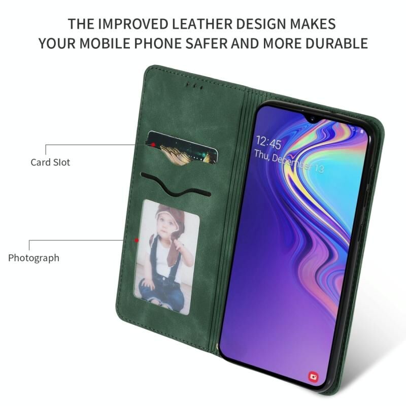 Ρετρό δέρμα αισθάνομαι επιχείρηση μαγνητική οριζόντια Flip δερμάτινη θήκη για Galaxy M10 (Στρατού πράσινο)