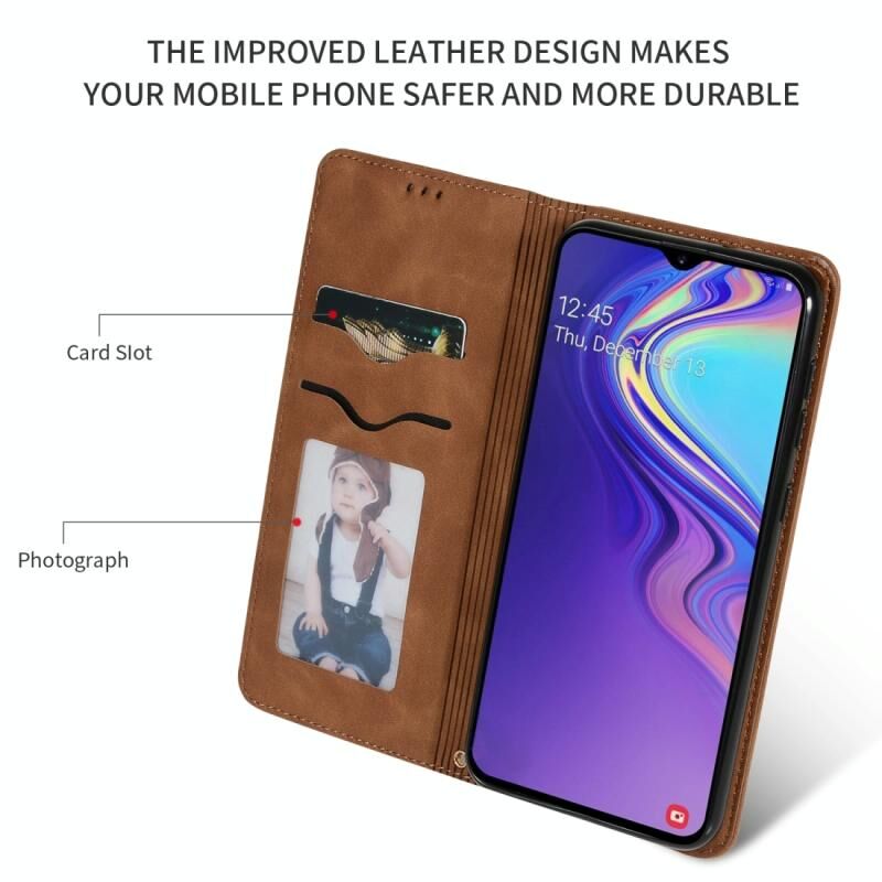 Ρετρό δέρμα αίσθηση Business μαγνητική οριζόντια Flip δερμάτινη θήκη για Galaxy M10 (καφέ)