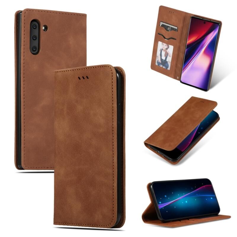 Ρετρό δέρμα αίσθηση Business μαγνητική οριζόντια Flip δερμάτινη θήκη για Galaxy Note 10(Brown)
