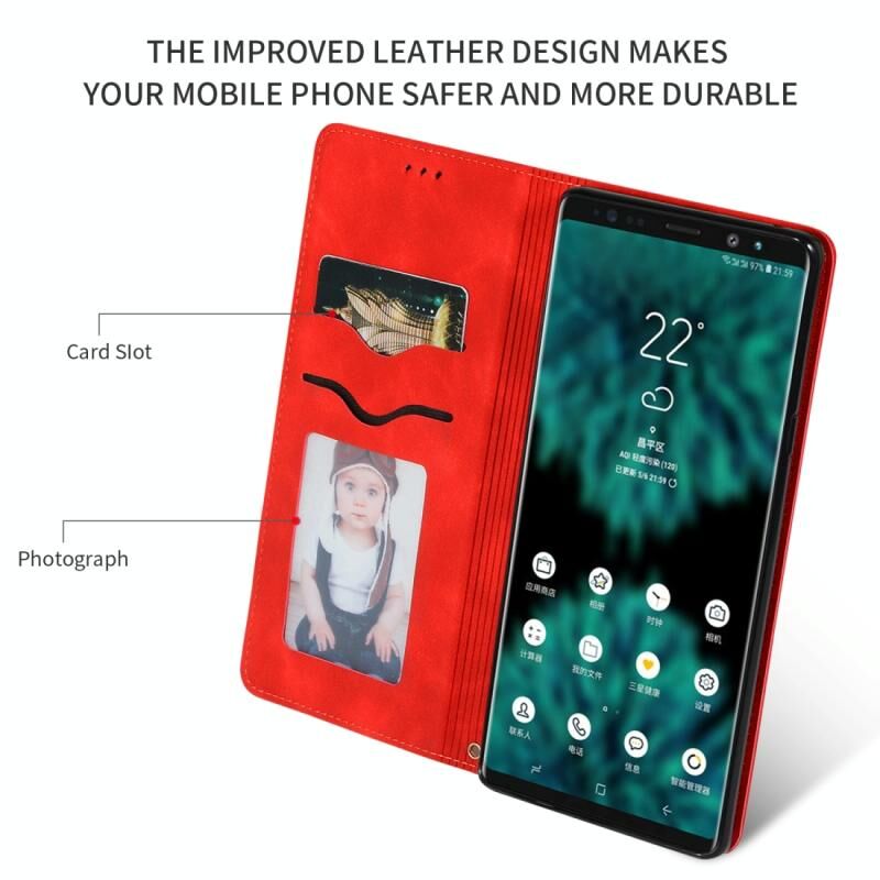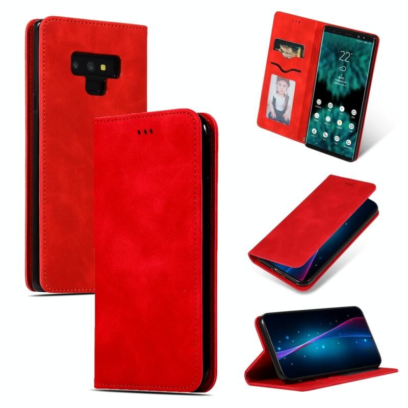 Ρετρό δέρμα αίσθηση Business μαγνητική οριζόντια Flip δερμάτινη θήκη για Galaxy Note 9 (κόκκινο)