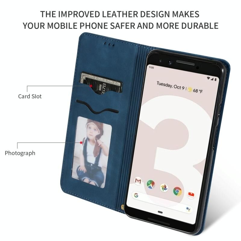 Ρετρό δέρμα αίσθηση Business μαγνητική οριζόντια Flip δερμάτινη θήκη για το Google Pixel 3 (Navy Blue)