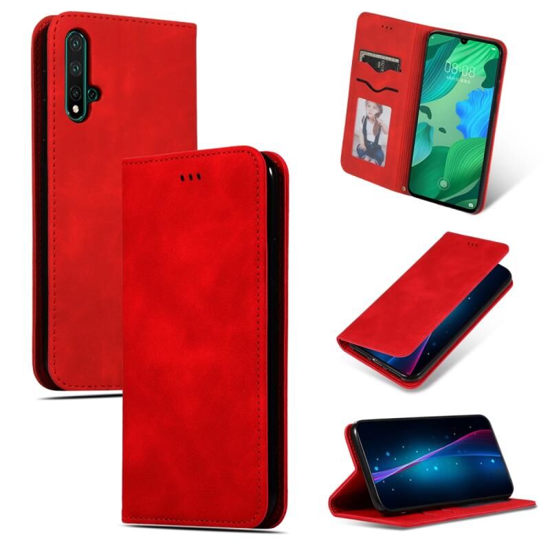 Θήκη δέρματος μαγνητικού οριζόντιου flip με ρετρό αίσθηση για Huawei Nova 5 / Nova 5 Pro (Κόκκινο)