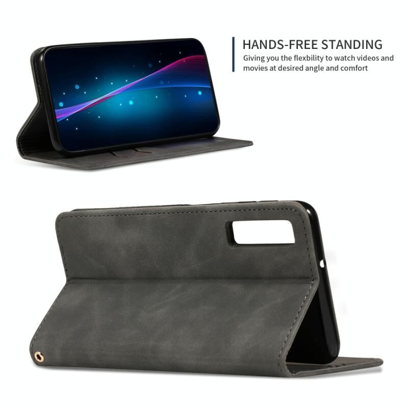 Ρετρό δέρμα αίσθηση Business μαγνητική οριζόντια Flip δερμάτινη θήκη για Samsung Galaxy A7 2018 (σκούρο γκρι)