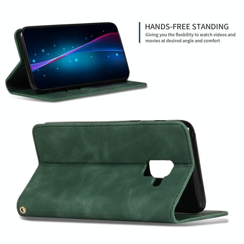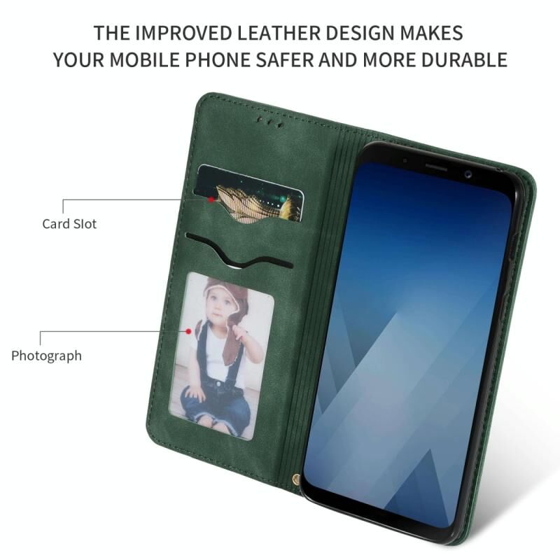 Retro Skin Feel Business μαγνητική οριζόντια Flip δερμάτινη θήκη για Samsung Galaxy A8 Plus 2018 (Στρατιωτικό πράσινο)