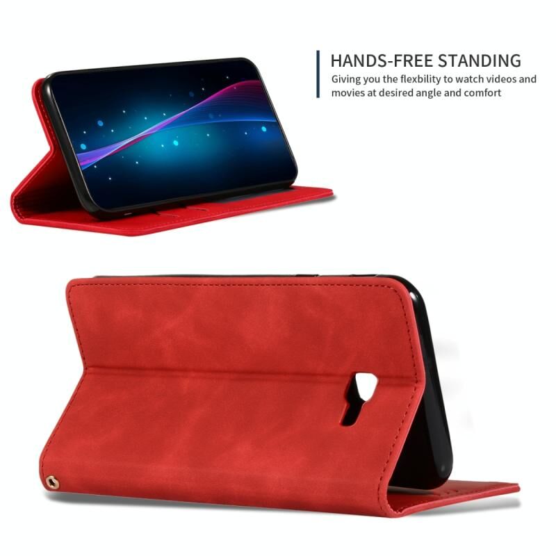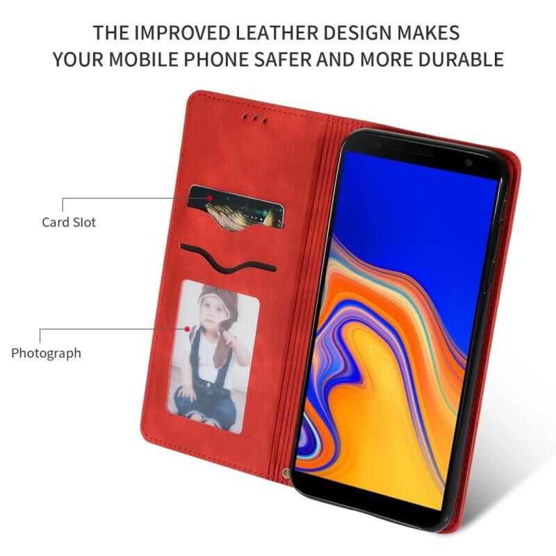 Retro Skin Feel Business μαγνητική οριζόντια Flip δερμάτινη θήκη για Samsung Galaxy J4 Plus 2018 & J4 Prime (Κόκκινο)