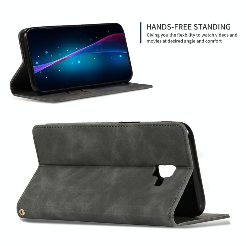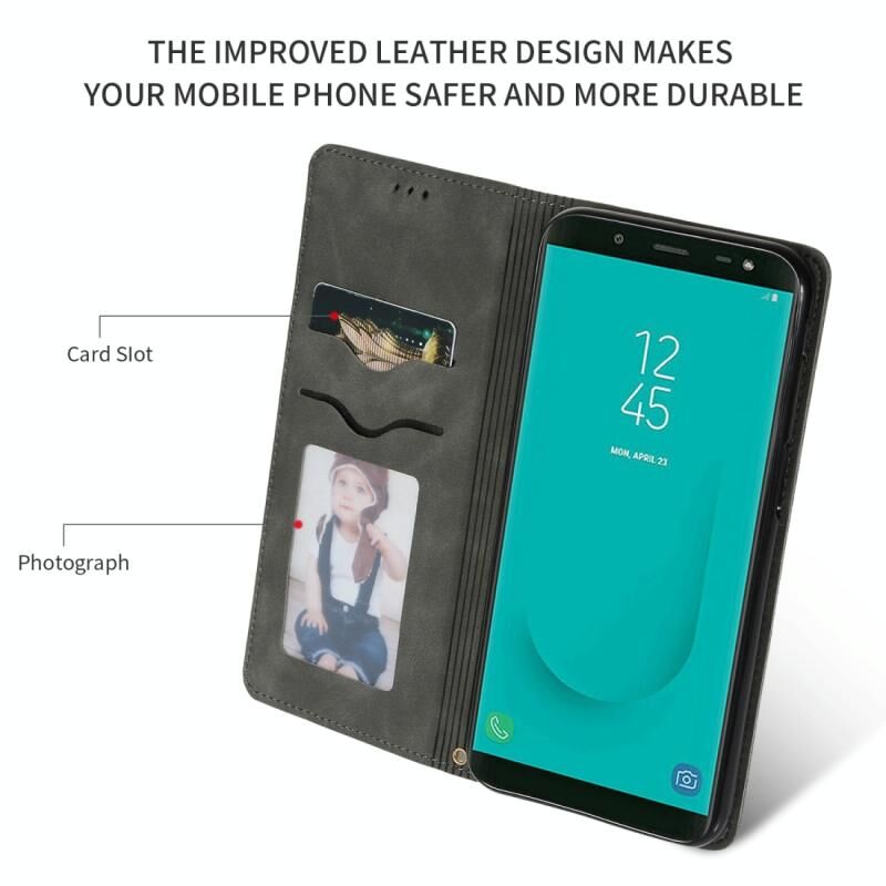 Retro Skin Feel Business μαγνητική οριζόντια Flip δερμάτινη θήκη για Samsung Galaxy J6 Plus 2018 & J6 Prime (σκούρο γκρι)
