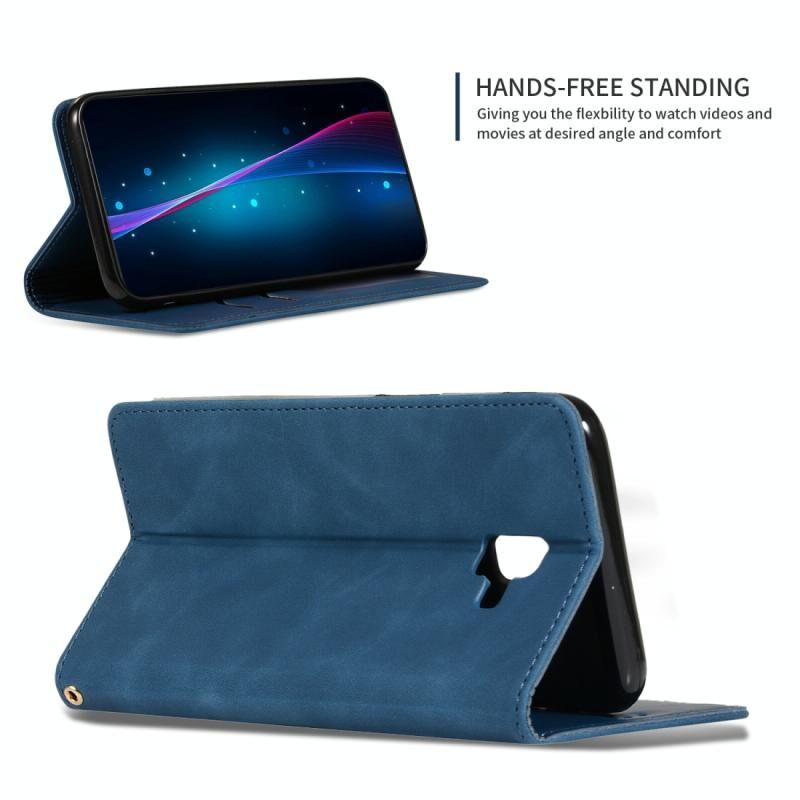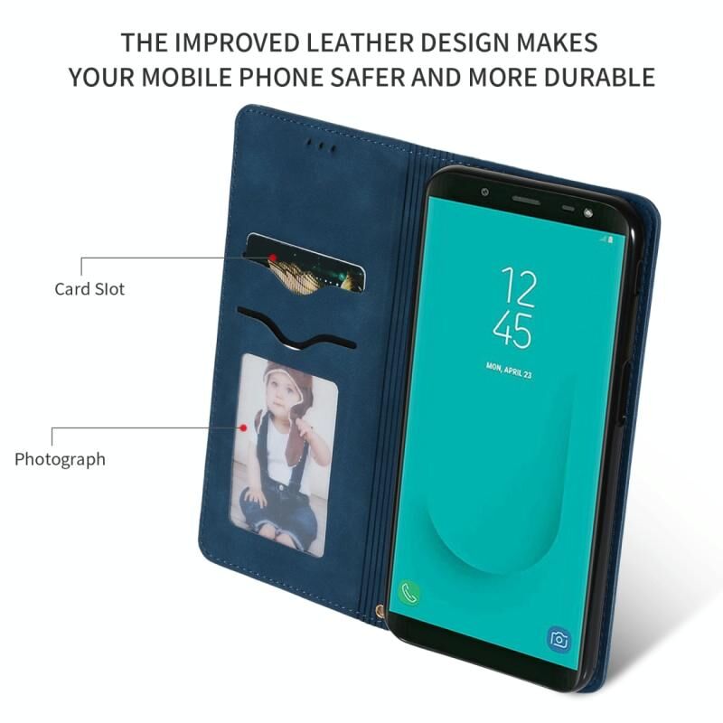 Retro Skin Feel Business μαγνητική οριζόντια Flip δερμάτινη θήκη για Samsung Galaxy J6 Plus 2018 & J6 Prime (Navy Blue)