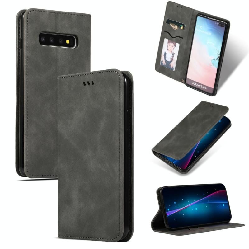 Ρετρό δέρμα αίσθηση Business μαγνητική οριζόντια Flip δερμάτινη θήκη για Samsung Galaxy S10 Plus (σκούρο γκρι)