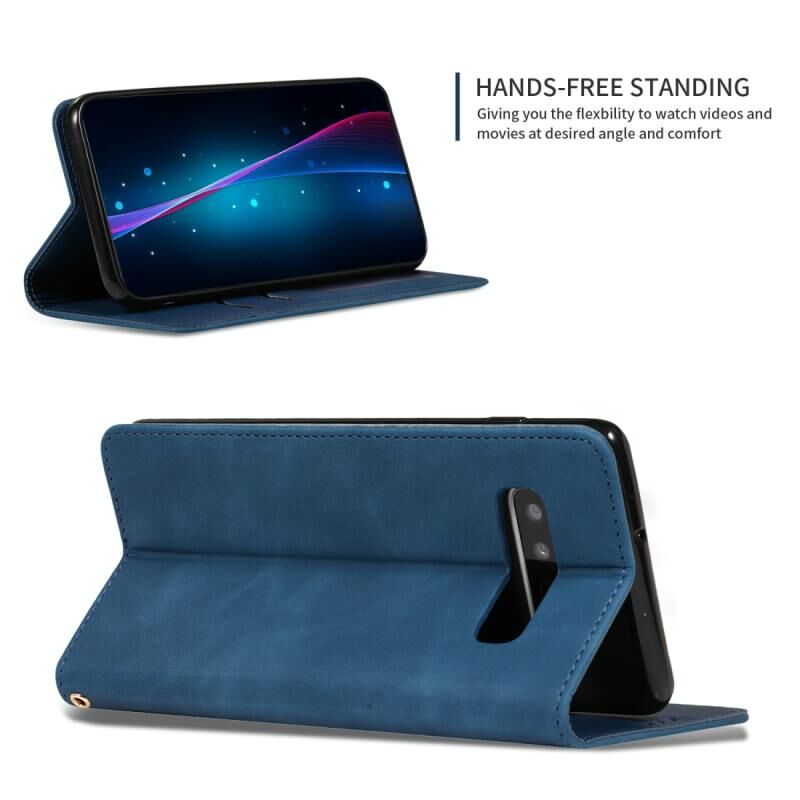 Ρετρό δέρμα αίσθηση Business μαγνητική οριζόντια Flip δερμάτινη θήκη για Samsung Galaxy S10 Plus (Navy Blue)