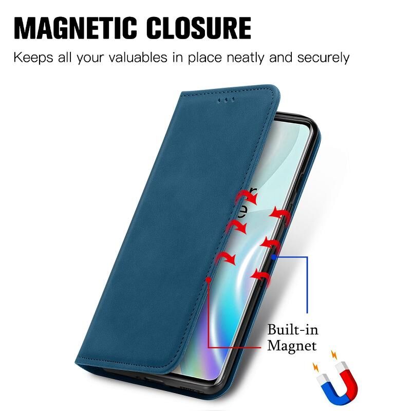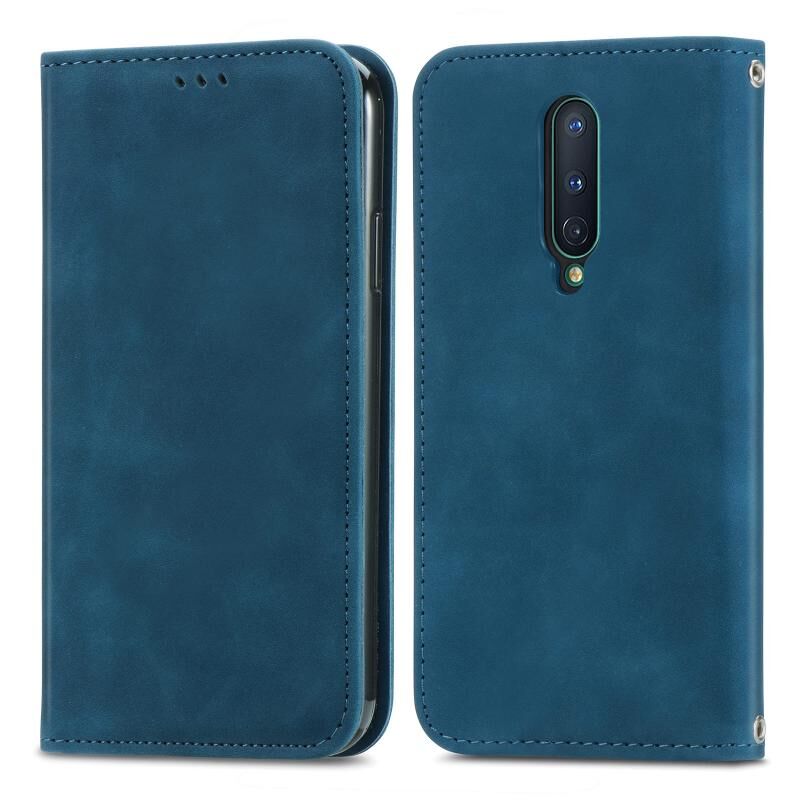 Ρετρό δέρμα αίσθηση Business μαγνητική οριζόντια Flip δερμάτινη θήκη με κάτοχο & υποδοχές καρτών & πορτοφόλι & πλαίσιο φωτογραφιών για OnePlus 8 (μπλε)